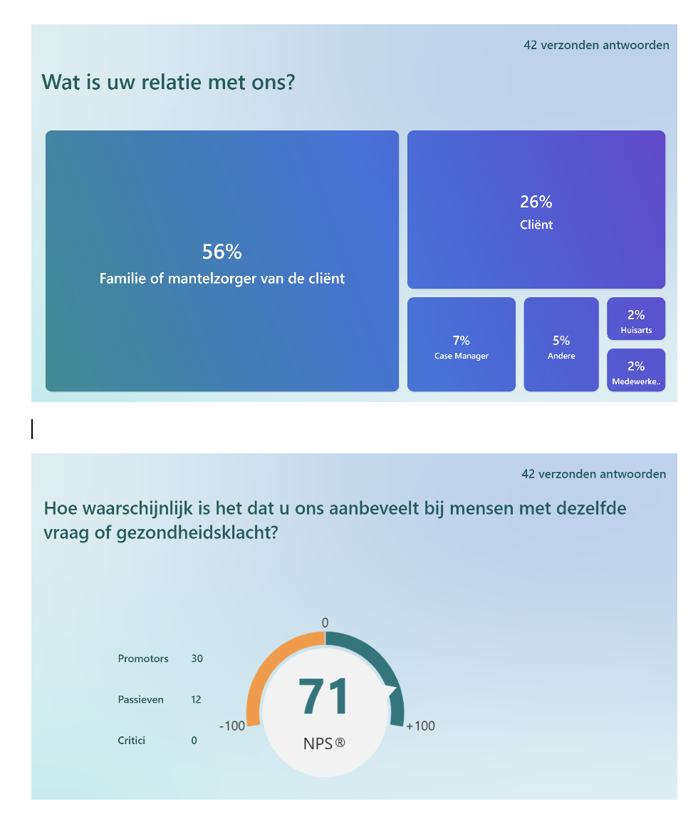 Deze uitkomsten worden 6x per jaar besproken met het hele team van GeriCall@Home. Wat we kunnen verbeteren doen we!